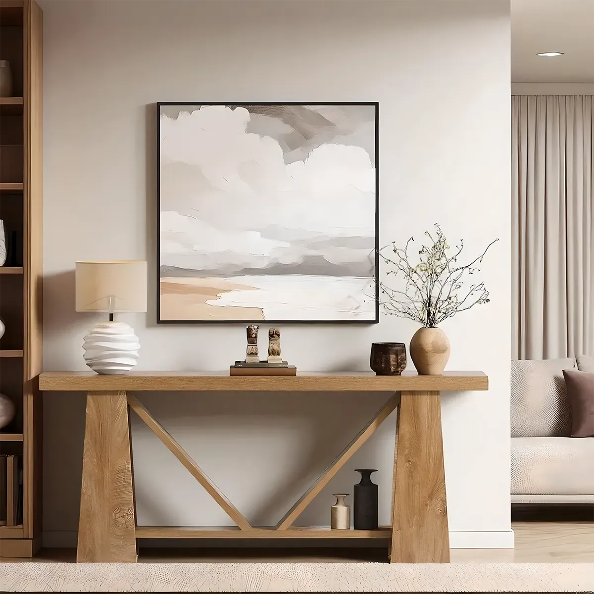 Weathered Timber Hall Surface Angular Base Contemporary Look is planned for daily living where simple lines and reliable build matter. Photos show clear grain, smooth planes, and tidy edges that help the piece read calm and balanced. The surface offers room for trays, lighting, and decor, while the footprint stays narrow so halls and room edges remain open. The finish is sealed for routine cleaning and a soft hand feel. Rounded corners reduce sharp contact and glides under the feet help protect flooring. Because timber is a natural material, each board shows subtle shifts in tone and figure. These variations create a look that grows better with time and use. A weathered look and angular base create a present day stance with crisp lines. Straight rails and a steady apron give strength without visual noise. The look works with metal accents and woven baskets and keeps walkways clear. Use it in a hall or corridor where a neat edge is helpful and a modern tone is desired. Set on a level surface away from continuous direct sunlight to protect color. Wipe dust with a soft dry cloth and follow with a light damp cloth when needed, then dry fully. Avoid harsh chemicals and abrasive pads. Measure your space and compare to listed dimensions before installation. Images may display minor differences in lighting and environment. With steady care this piece will remain a useful and quiet presence in the room. The design supports flexible styling through seasons. Use trays, vases, and frames to shift the mood from casual to formal. The neutral form allows color accents to stand out while the structure stays calm in the background. The design supports flexible styling through seasons. Use trays, vases, and frames to shift the mood from casual to formal. The neutral form allows color accents to stand out while the structure stays calm in the background. The design supports flexible styling through seasons. Use trays, vases, and frames to shift the mood from casual to formal. The neutral form allows color accents to stand out while the structure stays calm in the background. The design supports flexible styling through seasons. Use trays, vases, and frames to shift the mood from casual to formal. The neutral form allows color accents to stand out while the structure stays calm in the background. The design supports flexible styling through seasons. Use trays, vases, and frames to shift the mood from casual to formal. The neutral form allows color accents to stand out while the structure stays calm in the background.